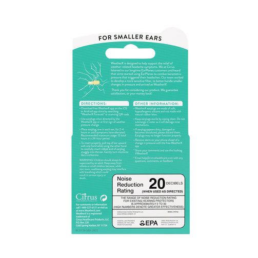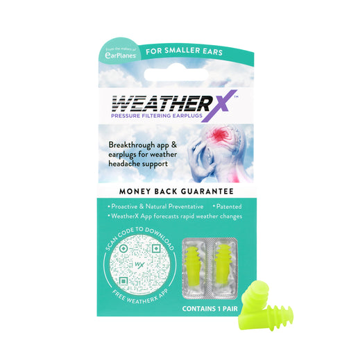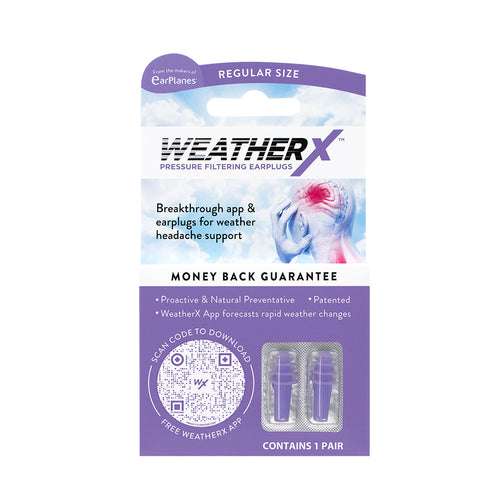 WeatherX™ earplugs are pressure filtering earplugs designed to help prevent headaches triggered by barometric pressure.