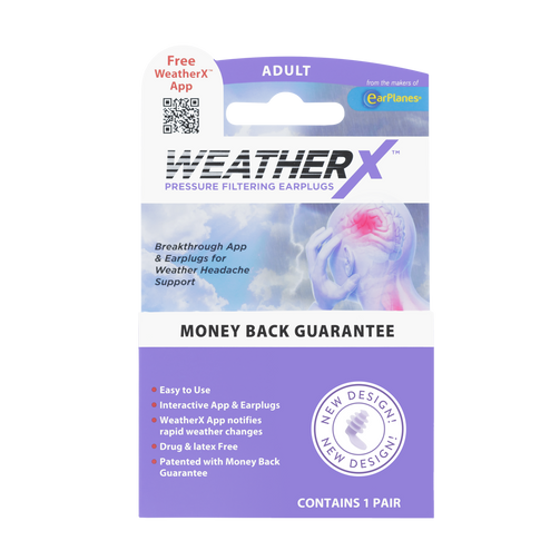 WeatherX™ earplugs are pressure filtering earplugs designed to help prevent headaches triggered by barometric pressure.